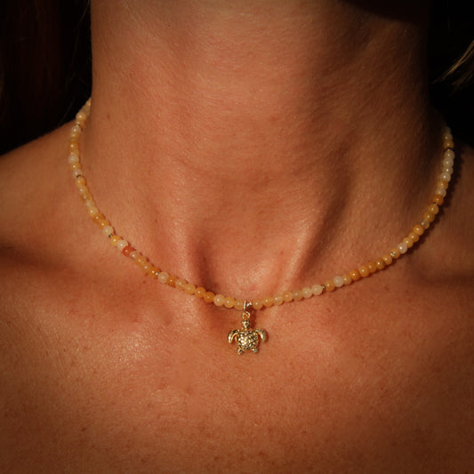 Gemstone Choker - Yellow Aventurine & Turtle Charm