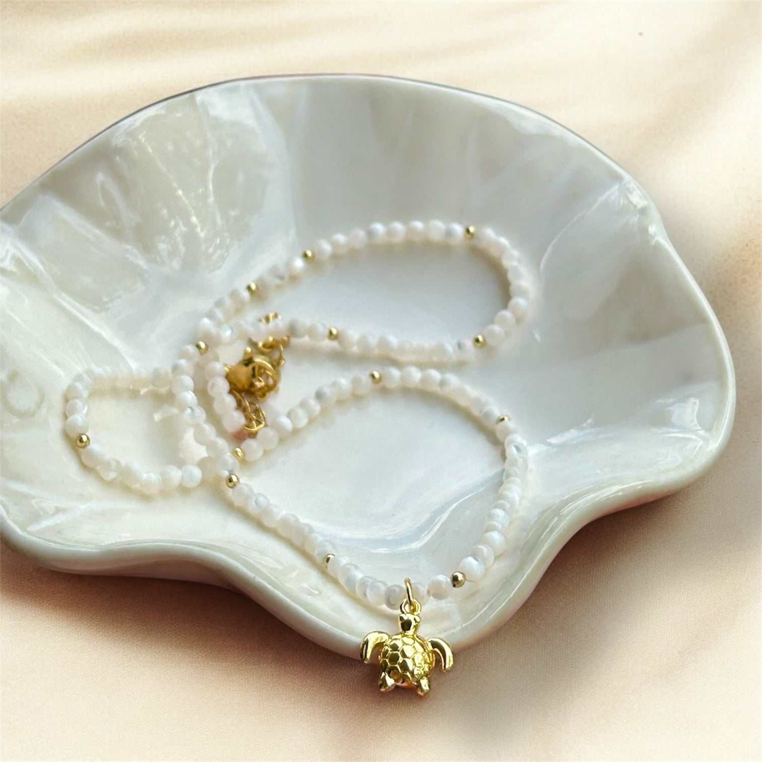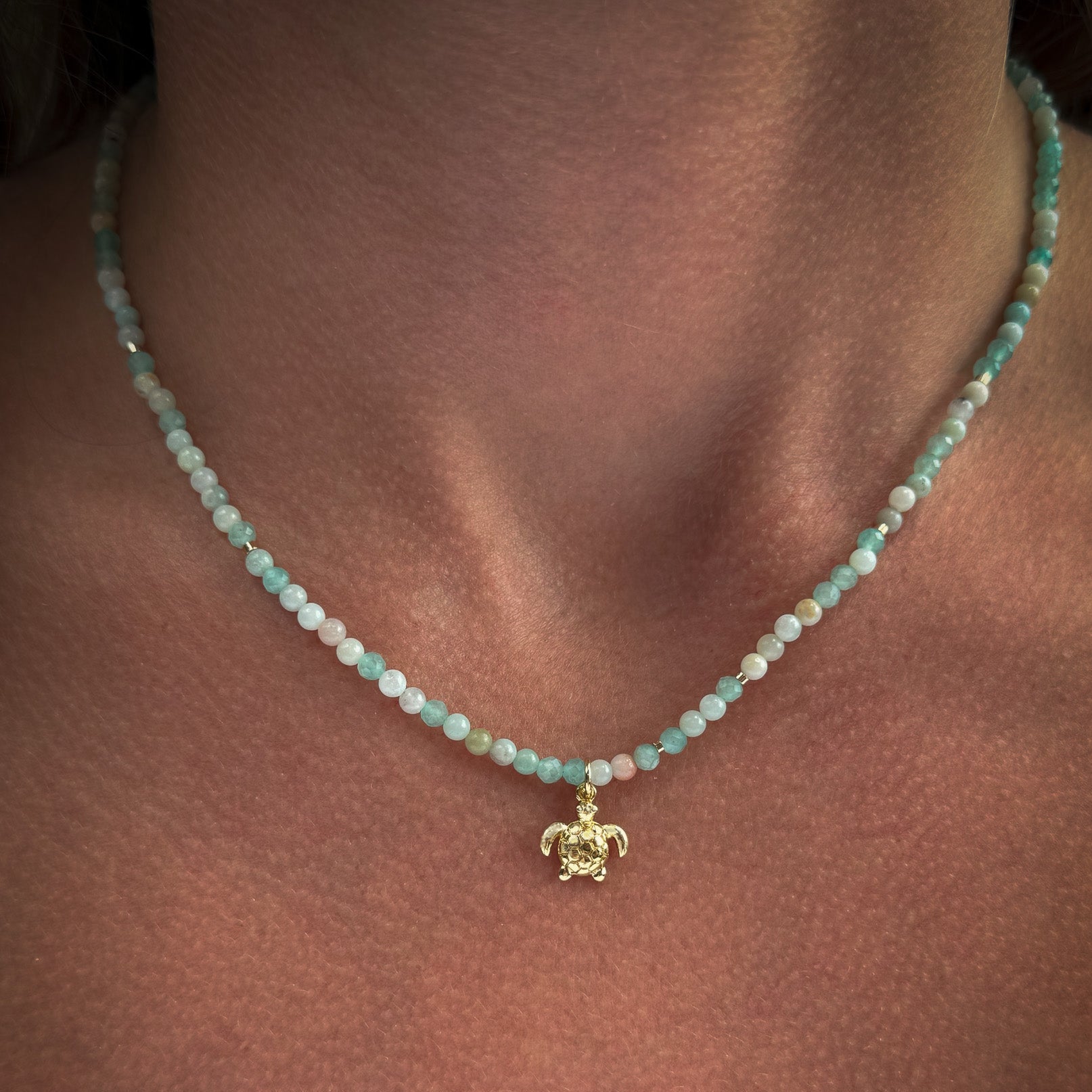 Salty air, golden sunsets, and the sound of waves — now you can take the ocean with you, wherever you go. This choker features a 18K gold-plated charm, and handpicked natural gemstones, each with its own unique energy.