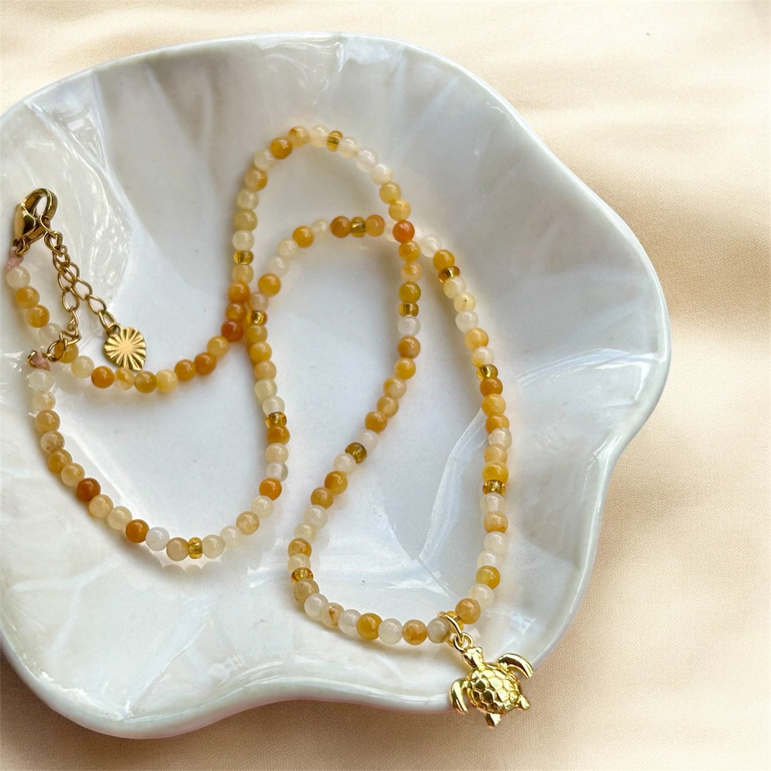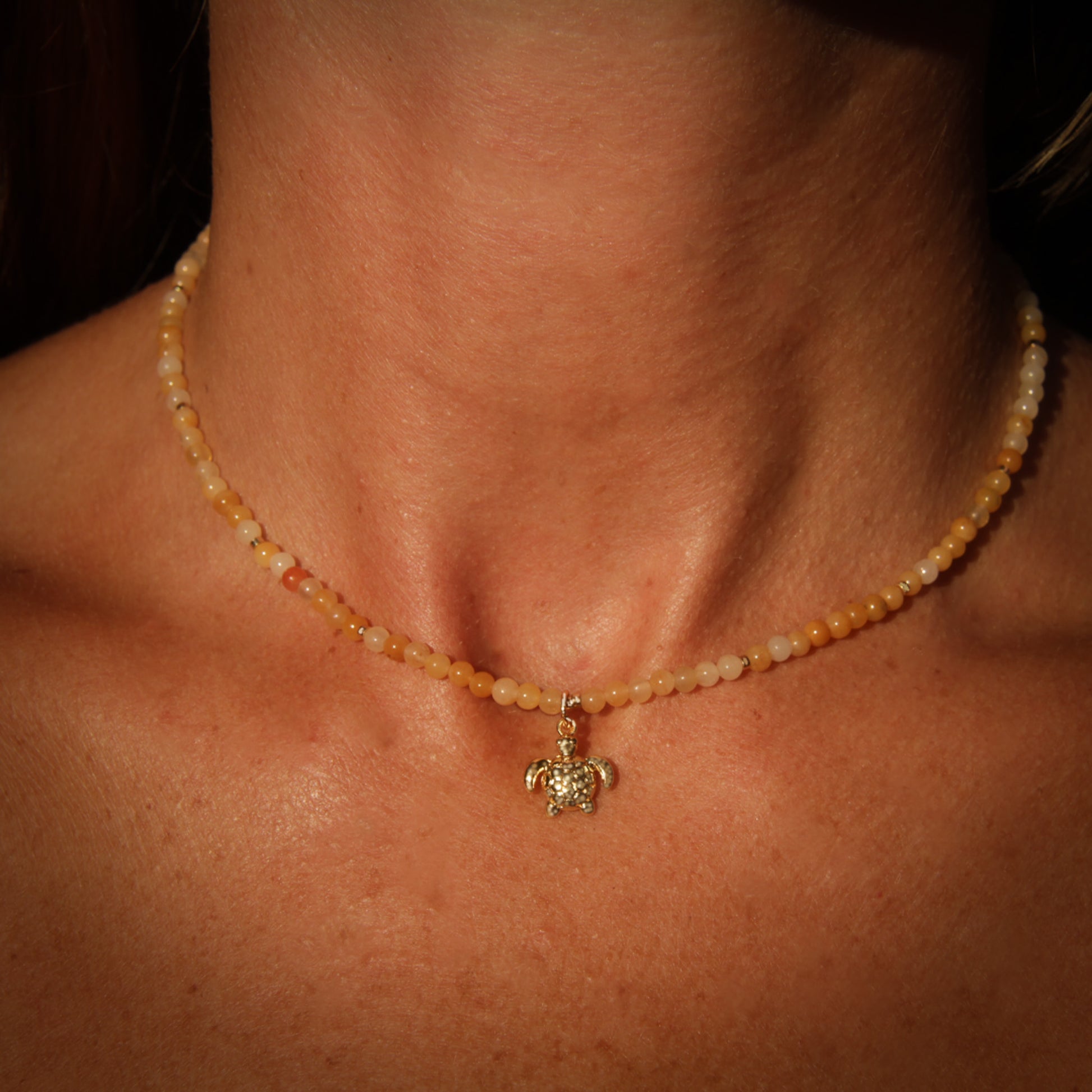 Salty air, golden sunsets, and the sound of waves — now you can take the ocean with you, wherever you go. This choker features a 18K gold-plated charm, and handpicked natural gemstones, each with its own unique energy.