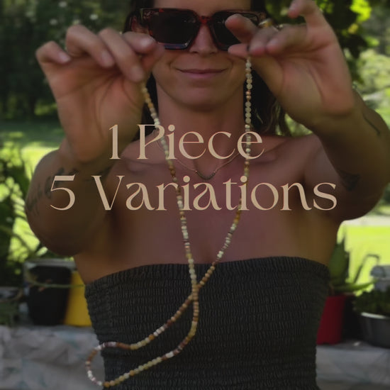 Enjoy a piece that seamlessly transitions from a sunglass chain to a bracelet, necklace, or even a belly chain—all in one.